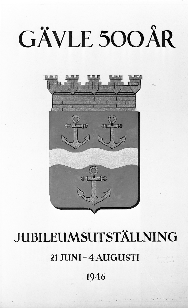 Jubileumsaffisch, till jubileumsutställningen 1946 - Gävle 500 år. December 1945.