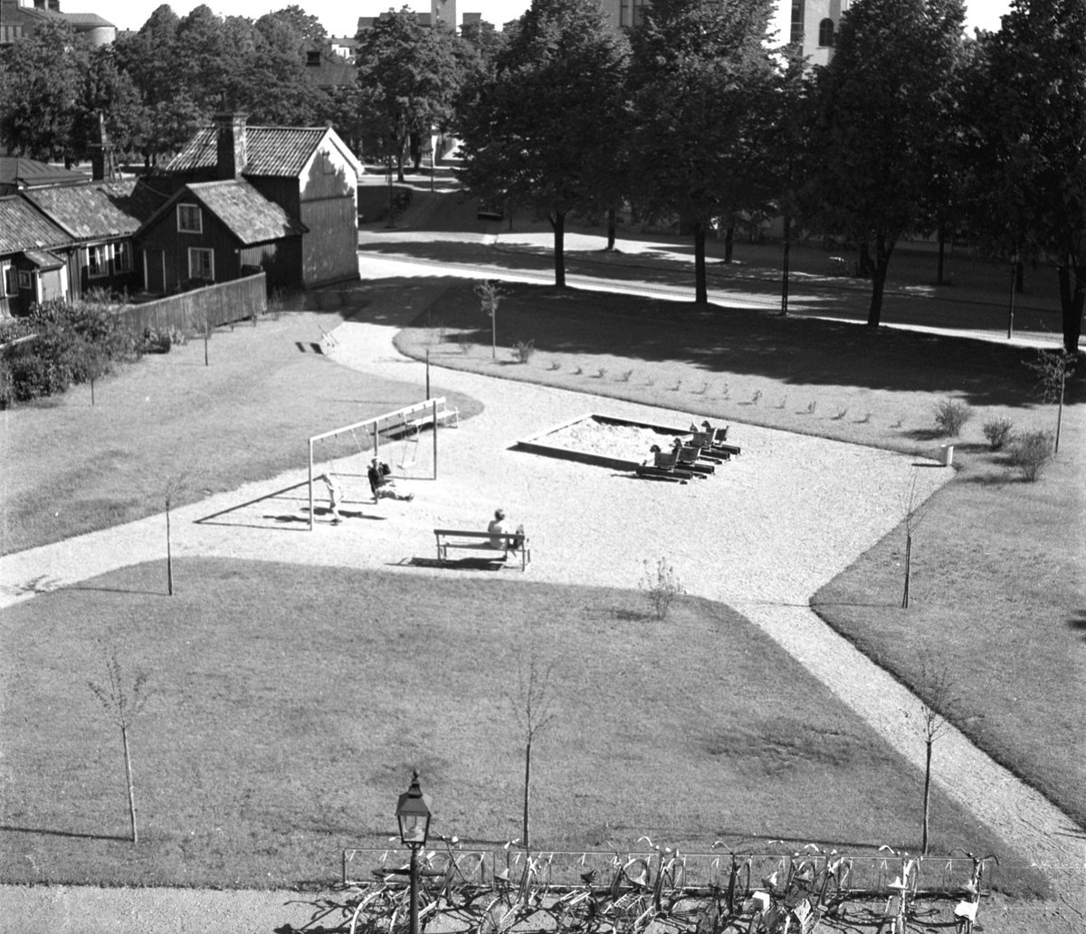 Gefle Dagblads reportage från vägbyggen och parkanläggningar, Juli 1950. Här lekplatsen mellan Brynäsgatan 8 och Östra Islandsgatan vid kv Springer.
