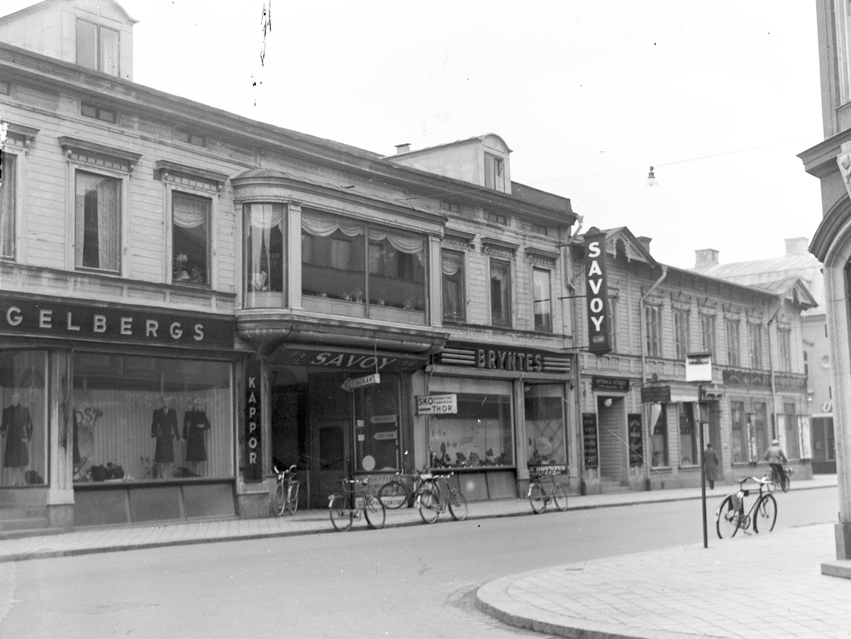 Drottninggatan med bl.a. Fogelbergs, Bryntes och Savoy