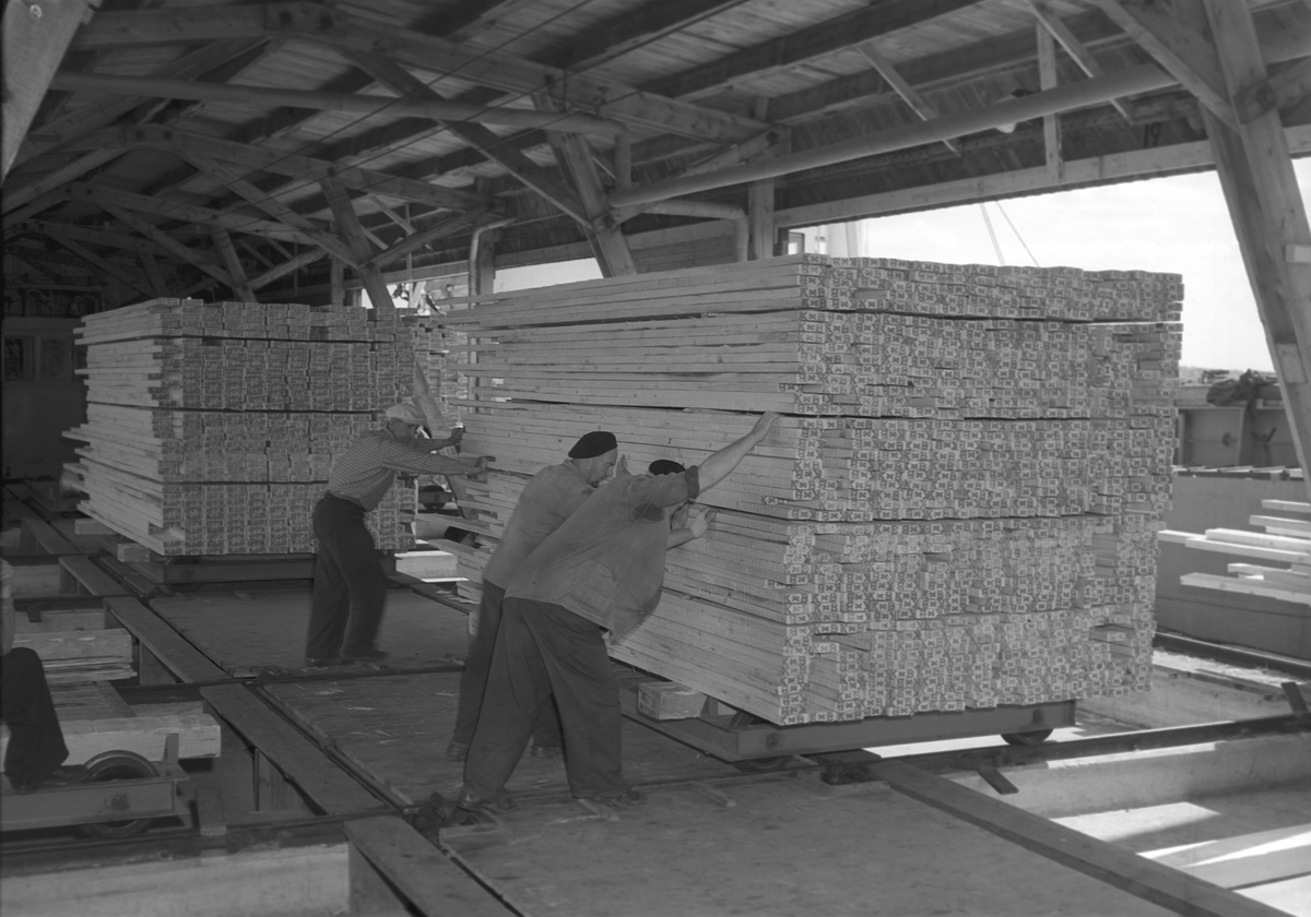 Sågverket, virkesmagasinet, lastning. Korsnäs AB är ett av Sveriges ledande skogsindustriföretag som tillverkar kartong, säck- och kraftpapper, fluffmassa till hygienprodukter och sågade trävaror.