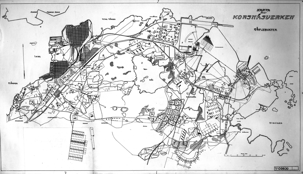 Karta över Korsnäsverken. Den 9 juni 1950. Korsnäs AB är ett av Sveriges ledande skogsindustriföretag som tillverkar kartong, säck- och kraftpapper, fluffmassa till hygienprodukter och sågade trävaror.