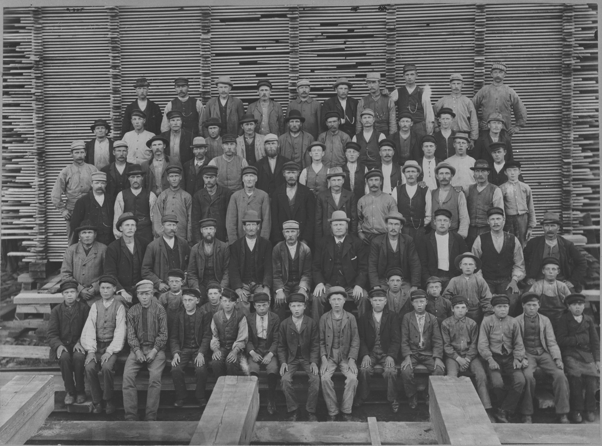 En grupp män. Korsnäs AB. Kopia. Den 14 augusti 1957