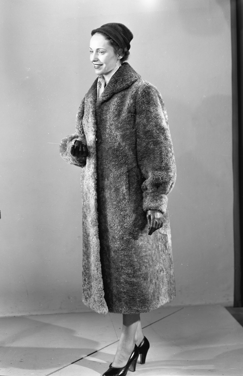 Pälskappa. L. Haglund & Co, med varumärket Elhå. Grundades som en affär för mössor, hattar och pälsvaror av Lars Haglund 1872.