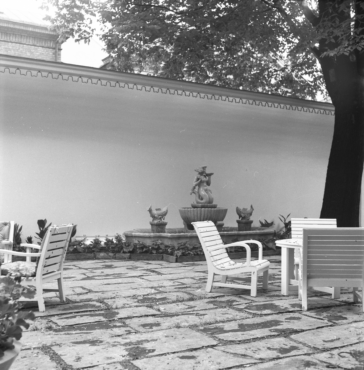 Grand Central Hotell, Gävle. Statyer i trädgården. Den 17 juni 1949
