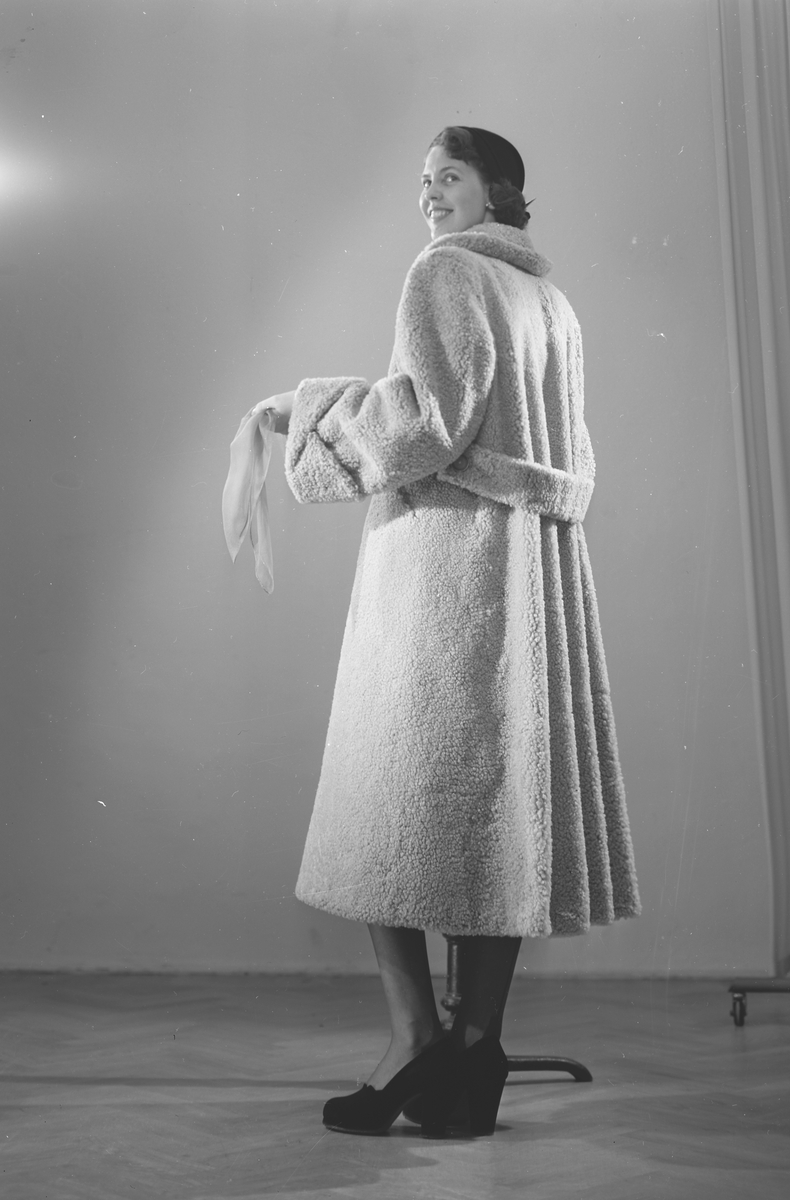 Pälskappa. L. Haglund & Co, med varumärket Elhå. Grundades som en affär för mössor, hattar och pälsvaror av Lars Haglund 1872.