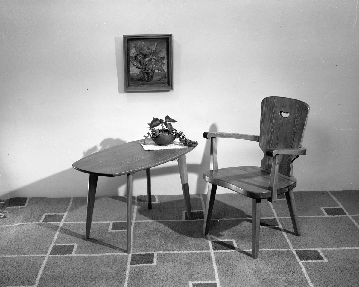 Bord, karmstol och matta. Den 18 oktober. Ahrnebergs