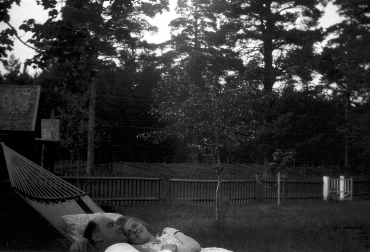 David Brundin med dotter Ingrid vilar sig i hängmattan på Brämen.