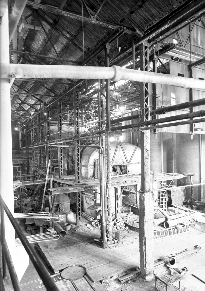 Interiör Sodahuset, Karskär på Korsnäsverken. Den 8 oktober 1948. Korsnäs AB är ett av Sveriges ledande skogsindustriföretag som tillverkar kartong, säck- och kraftpapper, fluffmassa till hygienprodukter och sågade trävaror.