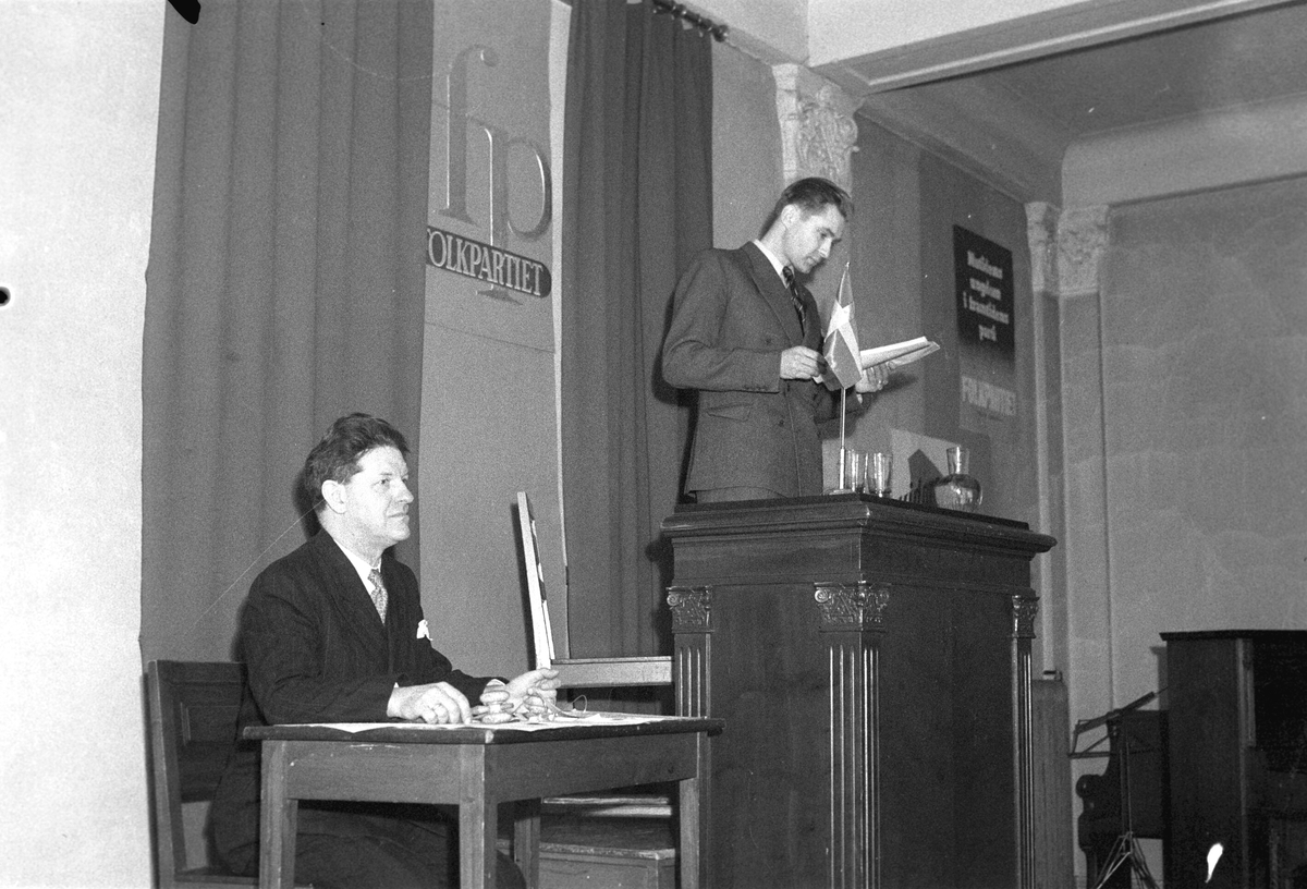 Folkpartiets årsmöte på TR-lokalen. 2 april 1949. Reportage för Gefle Dagblad.