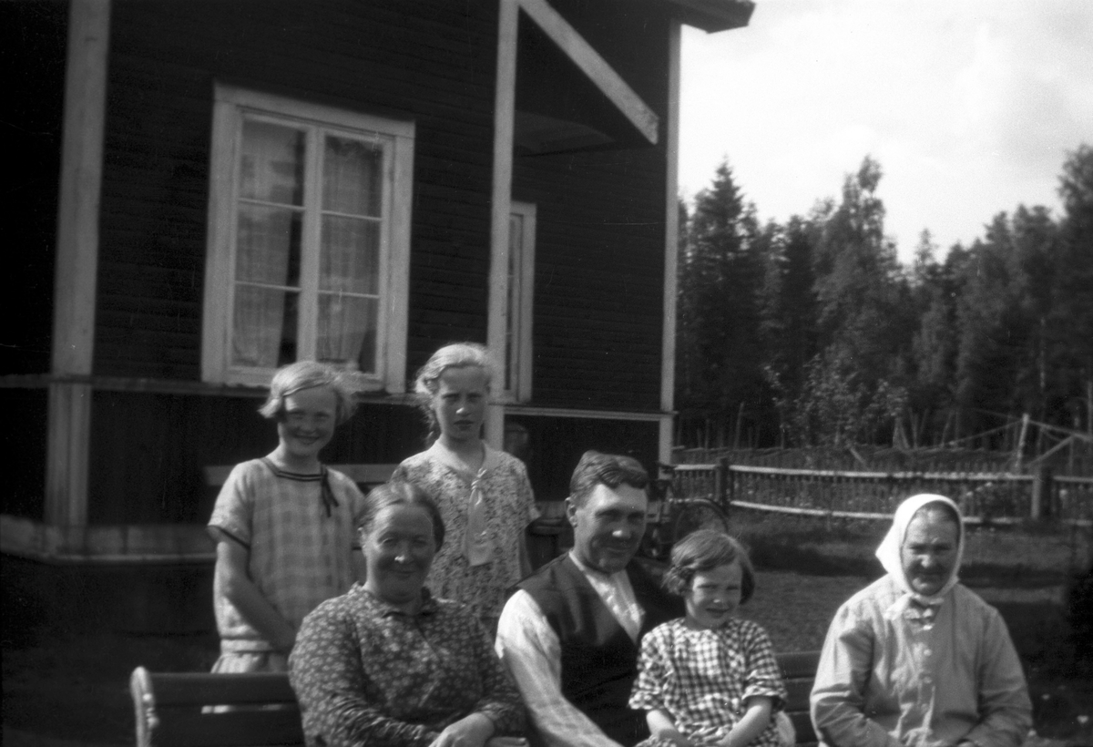 Här är en bild från arrendatorsbostaden på Brämen. Arrendatorn själv, Viktor Lundberg, tillsammans med sin hustru och dottern Karin i knät. Den andra dottern står till vänster bakom soffan. Övriga personer okända.