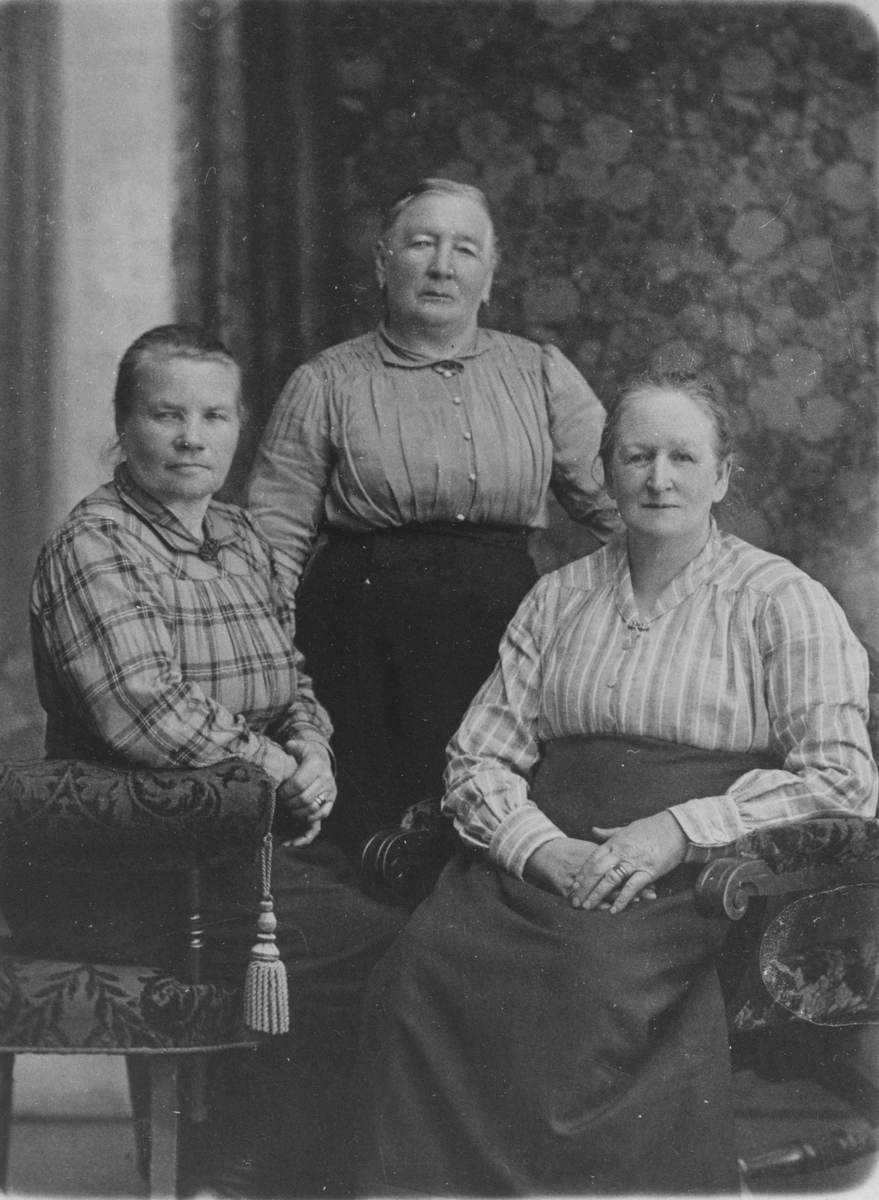 Fr.v. Greta Larsson ( Johan-Lars Greta), (fru David) Vennberg, Brita Skoglund. Hybo.
