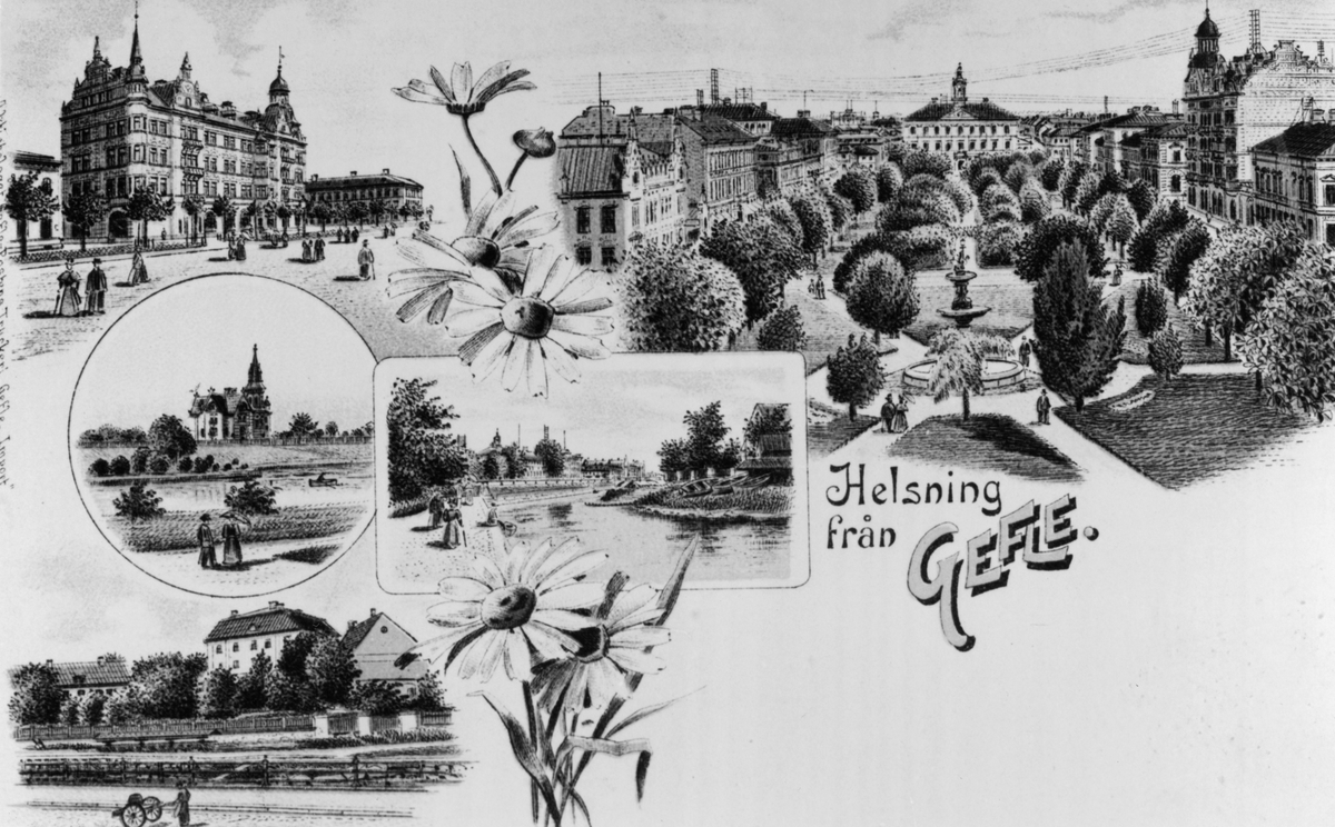 Vykort med text "Helsning från Gefle".
