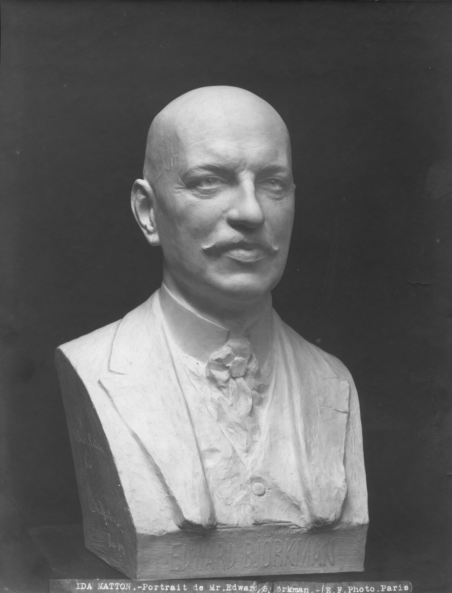 Skulptur av Ida Matton. Edward Björkman, porträtt.