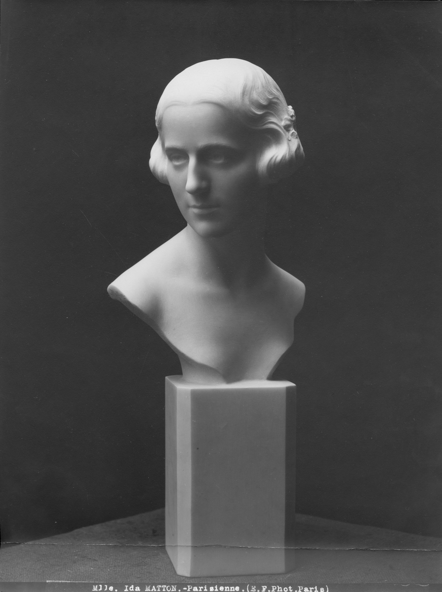 Skulptur av Ida Matton. Kvinnoporträtt.