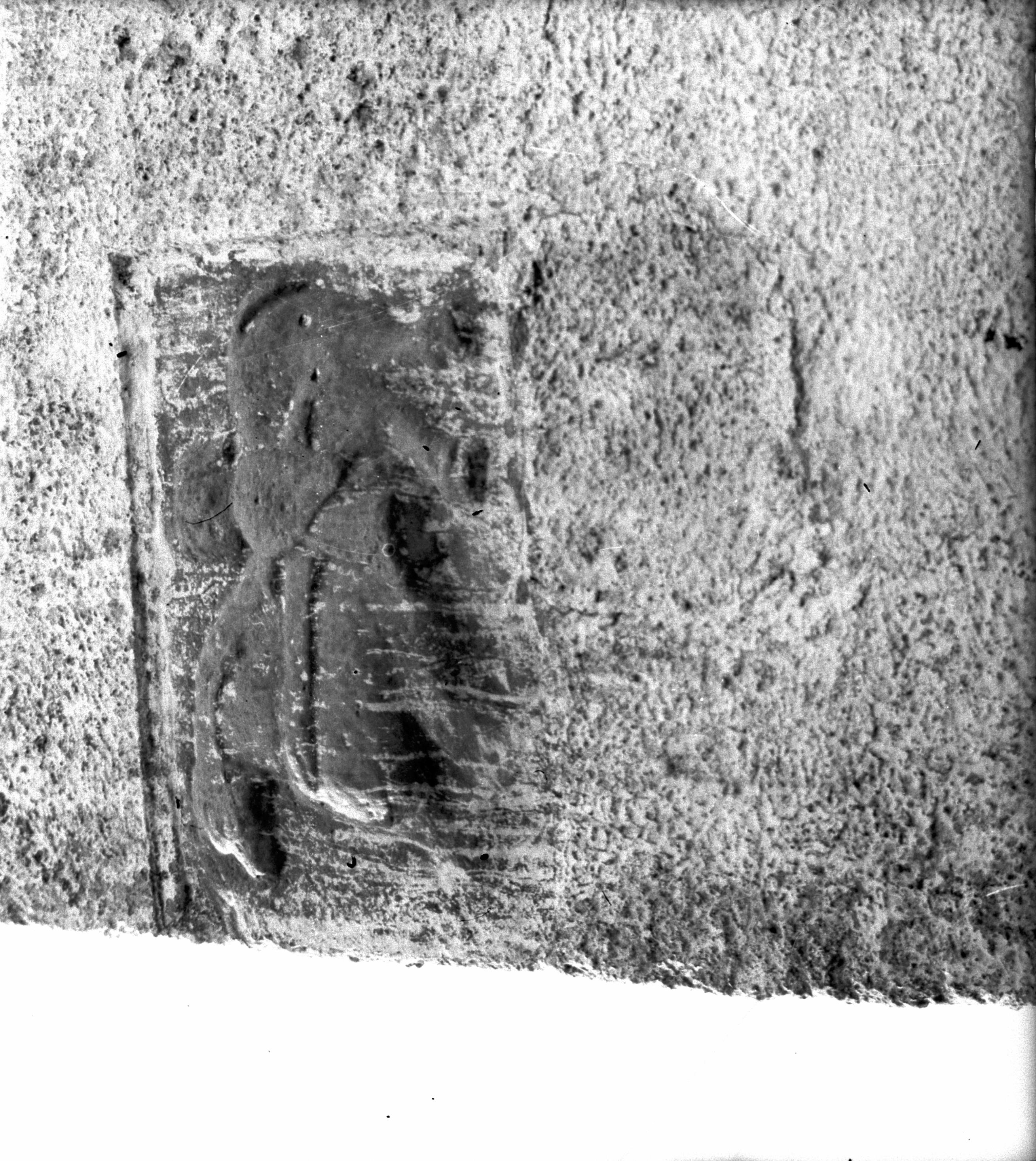 Stenskulptur på förhallens sydfasad.