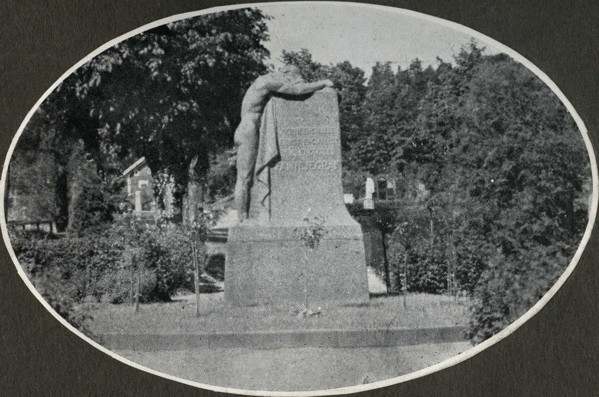 Skulptur av John Runer. Monumentet "Saknad" i granit på Engwalls familjegrav i Gävle.
