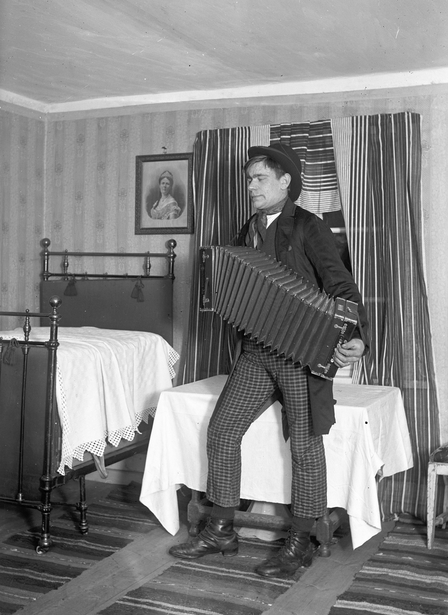 Josef Eriksson med dragspelet. Skyttefesten i Hästbo.