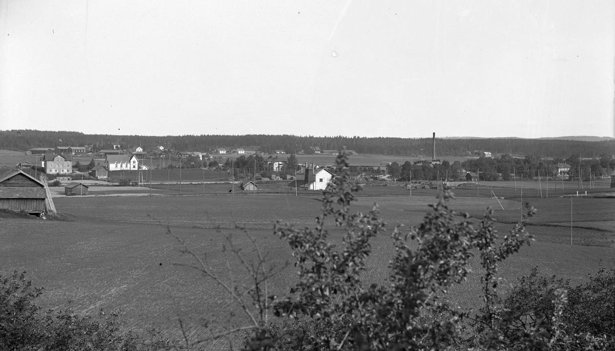 Östra Hästbo i bakgrunden, delar av Wästra Hästbo med Tjärfabriken i förgrunden.