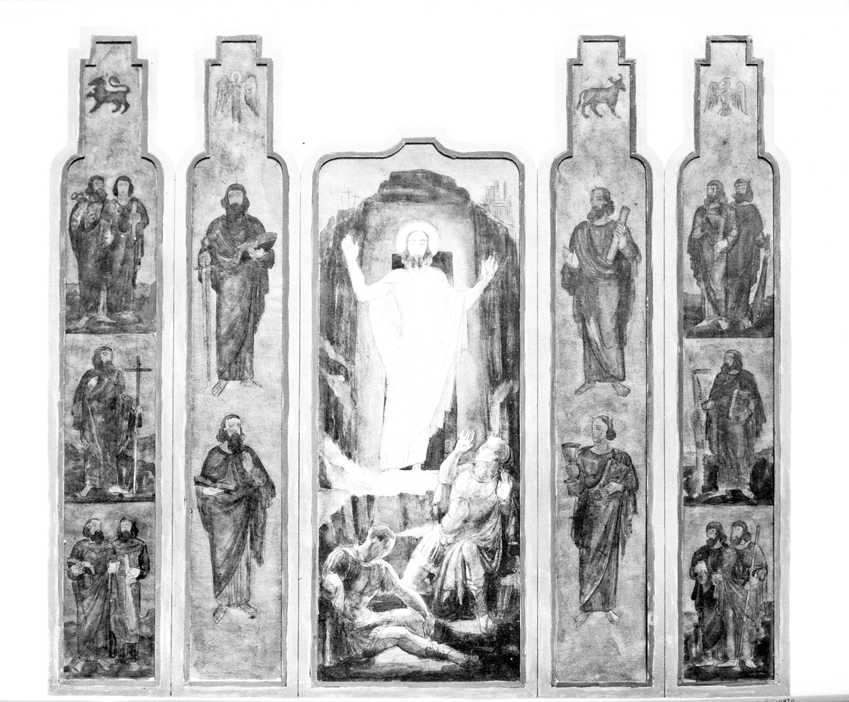 Altarskåpet i Staffans Kyrka. Kyrkan ritad av Knut Nordenskjöld invigd 1932 av ärkebiskopen Erling Eidem. Staffans Församling bildades 1916. Gudstjänsterna hölls före i Staffans Hus.