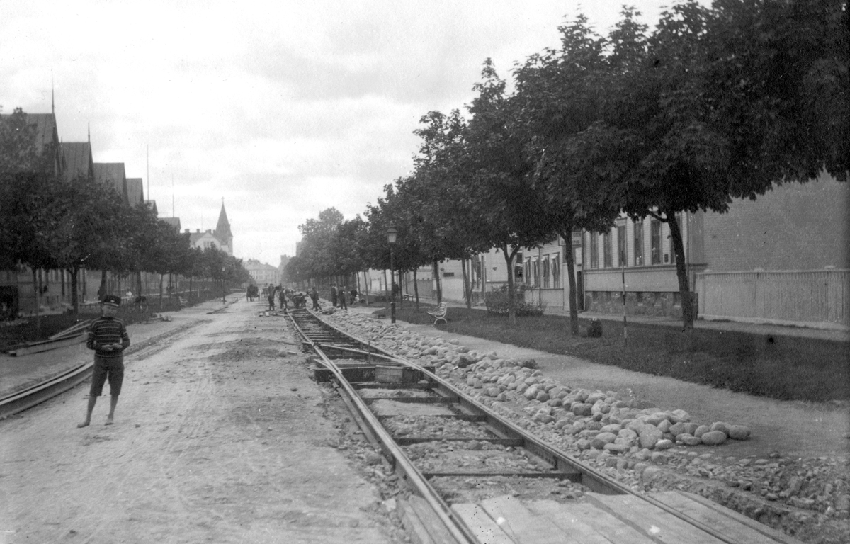 Anläggning av mötesspår Brynäsgatan och Tredje Tvärgatan.