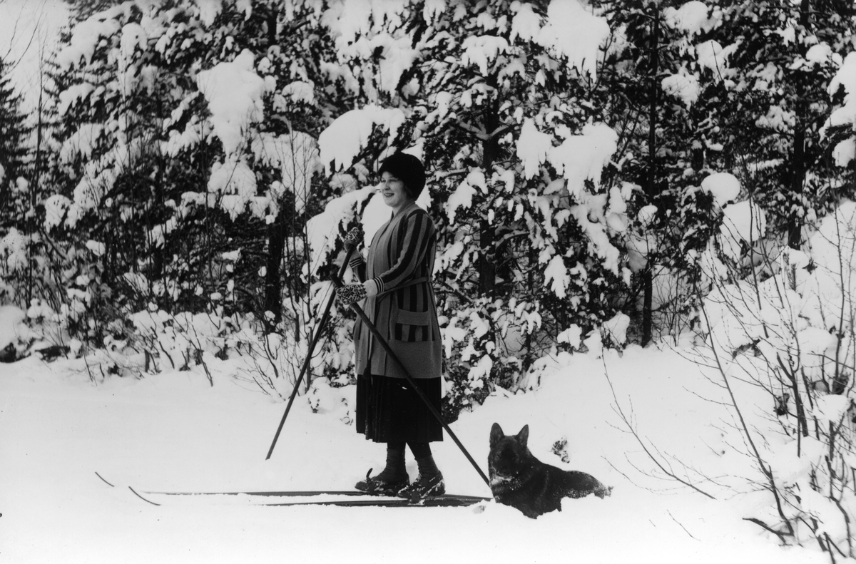 Signe Sjörén (fadern förvaltare på Herrgården) och hunden "Tjåla".