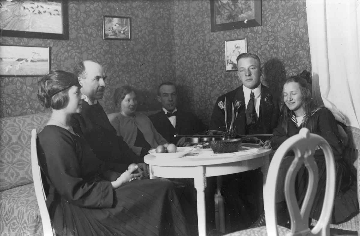 Från vänster: Gunborg Swanström, Målar-Emil (Nilsson), Målar-Astrid, Målar-Erhard, Petrus på Näset (Nilsson) och Magit Swanström.