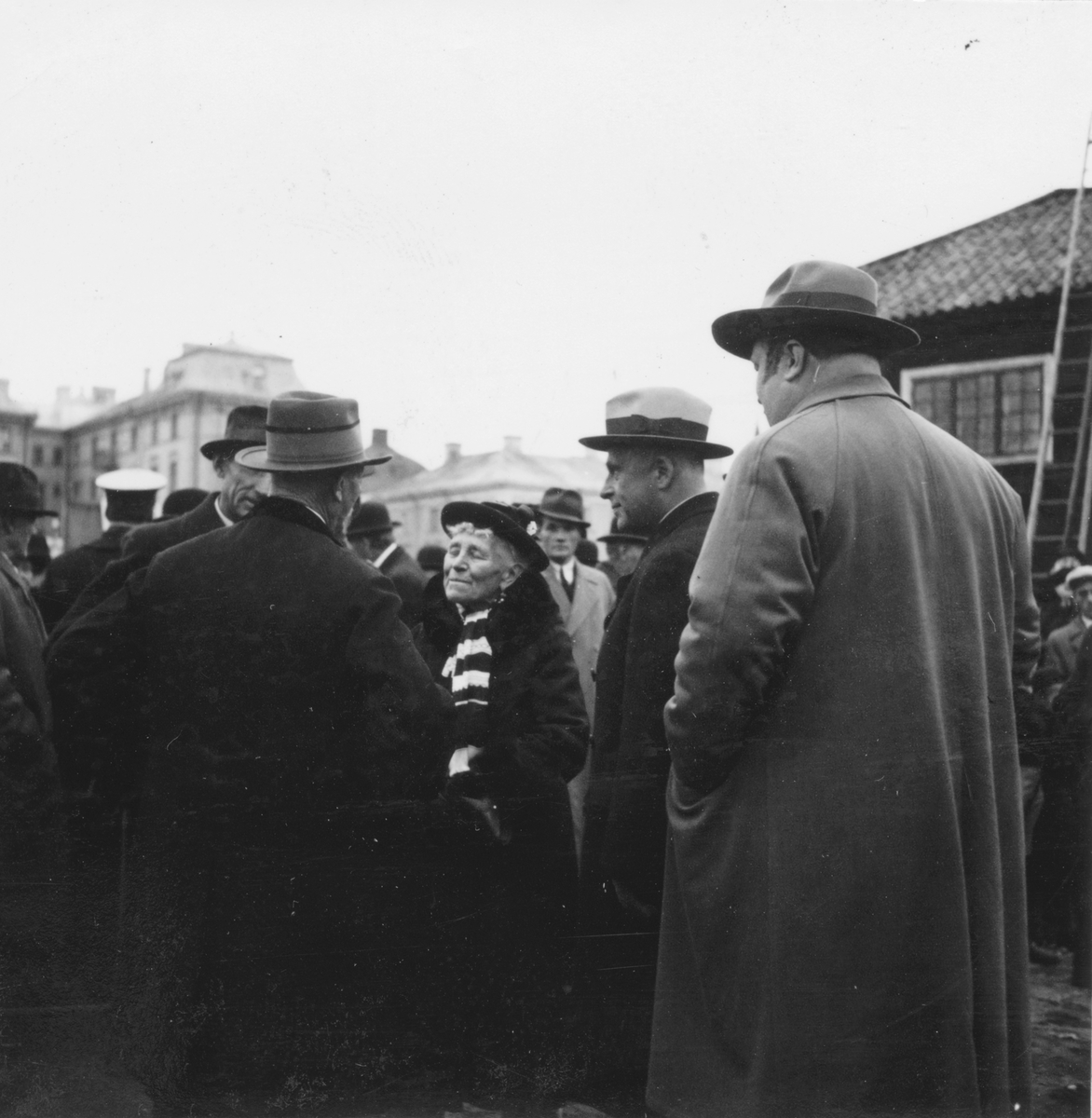 Grundstenen för Gävle Museum lägges 26 oktober 1938. Fru Formelli (syster till Antonie Rettig) i samspråk med bla. borgmästare Nils Berlin och länsintendent dr. Philibert Humbla museets förste chef. (Fru Formelli har identifierats från en bild i en artikel om evenemanget som publicerades i Norrlandsposten torsdagen 27 oktober 1938)