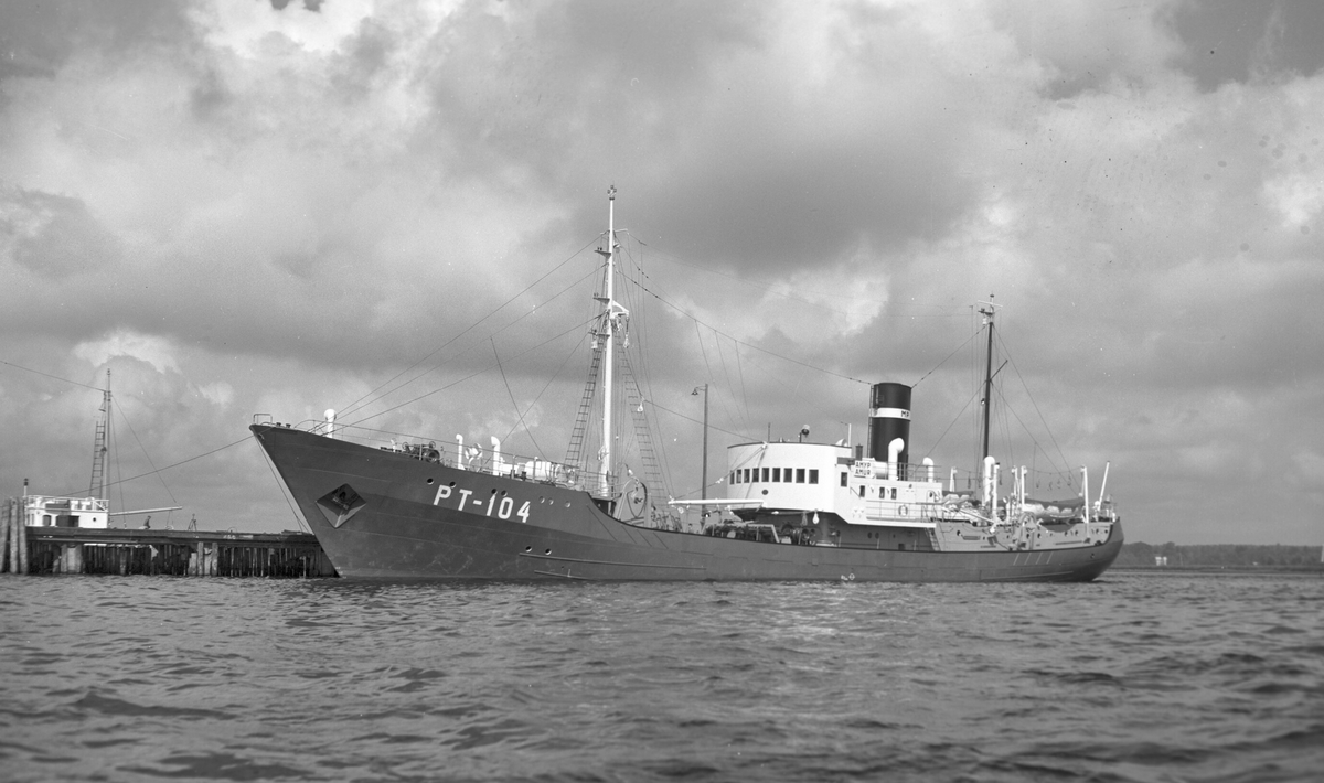 Fartyget "PT-104". Gävle Varv anlades 1873. Efter en konkurs 1921 bildades Gefle Varfvs och Verkstads Nya AB, som bland annat tillverkade oljecisterner och utrustningar till pappersmassefabriker. På 1940-talet återupptogs skeppsbyggeriet.