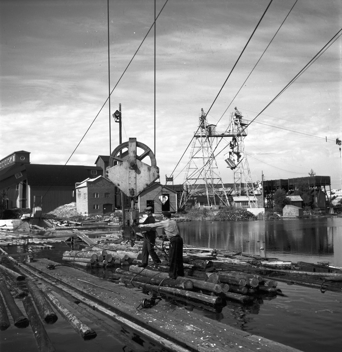 Linbana vid Korsnäs fabrik. 27 augusti 1947. Nordströms Linbanor AB, Vasagatan 16, Stockholm.