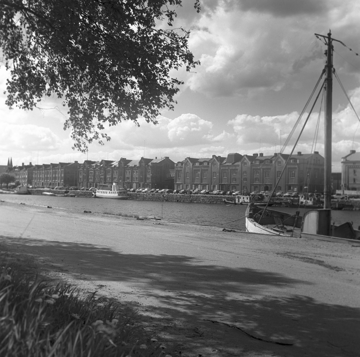 Gavleån mot Alderholmen och alla magasinsbyggnader