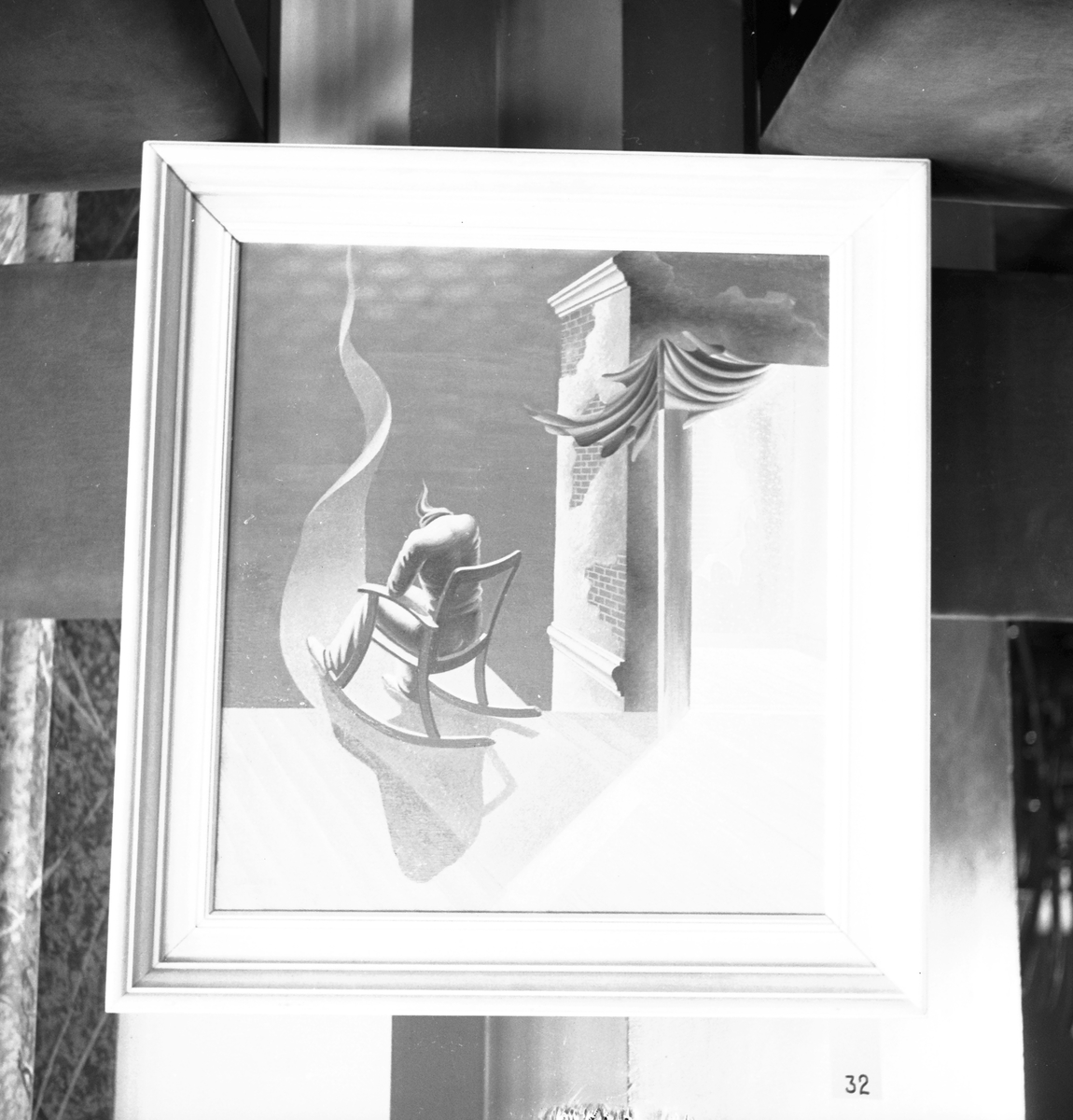 Titel: Reportage för Gefle Dagblad. Konstnären Mörner med flera tavlor. April 1939