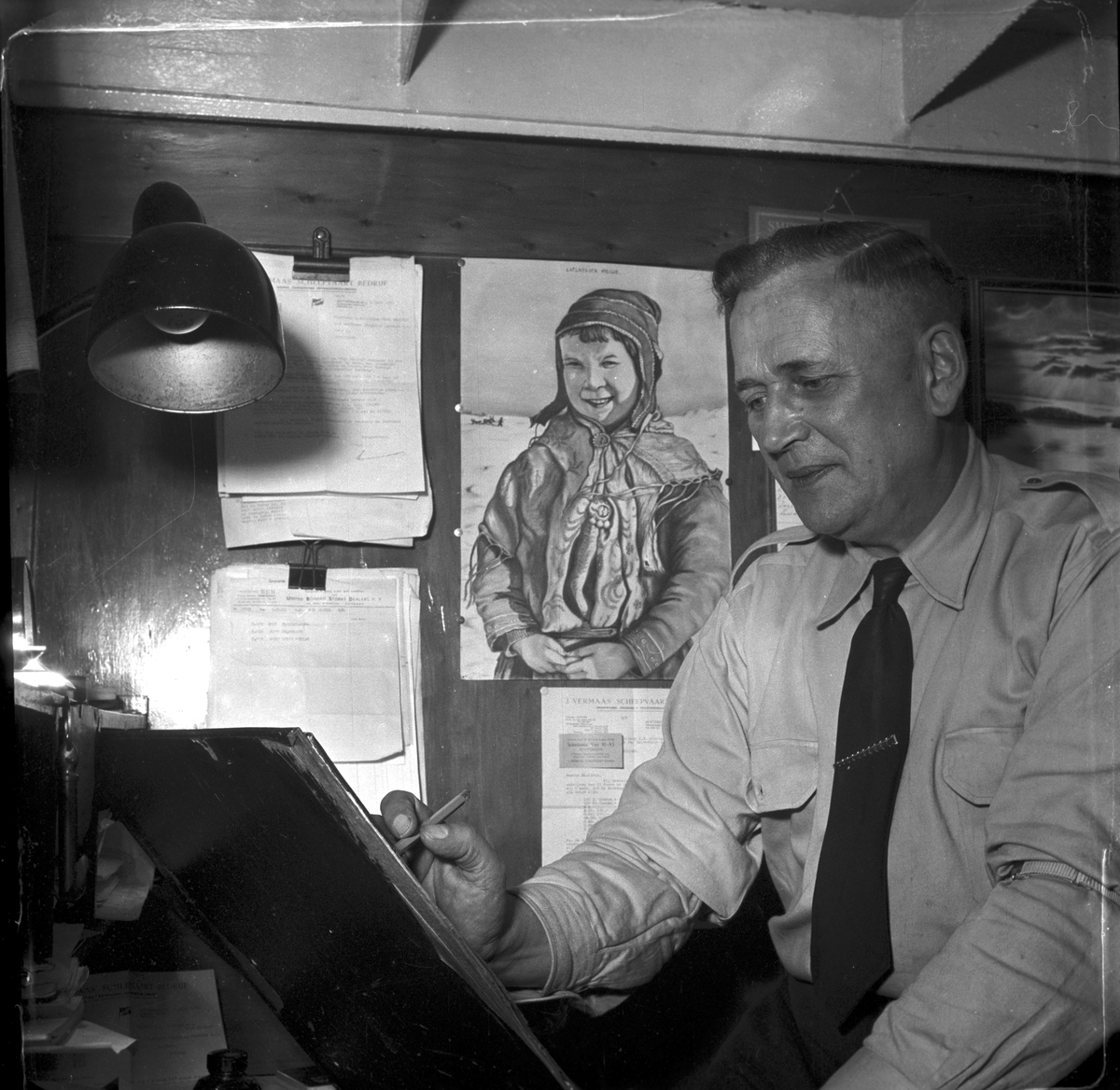 Fartyg i hamn. Kapten på holländska båten "Brakel". 20 juli 1953.