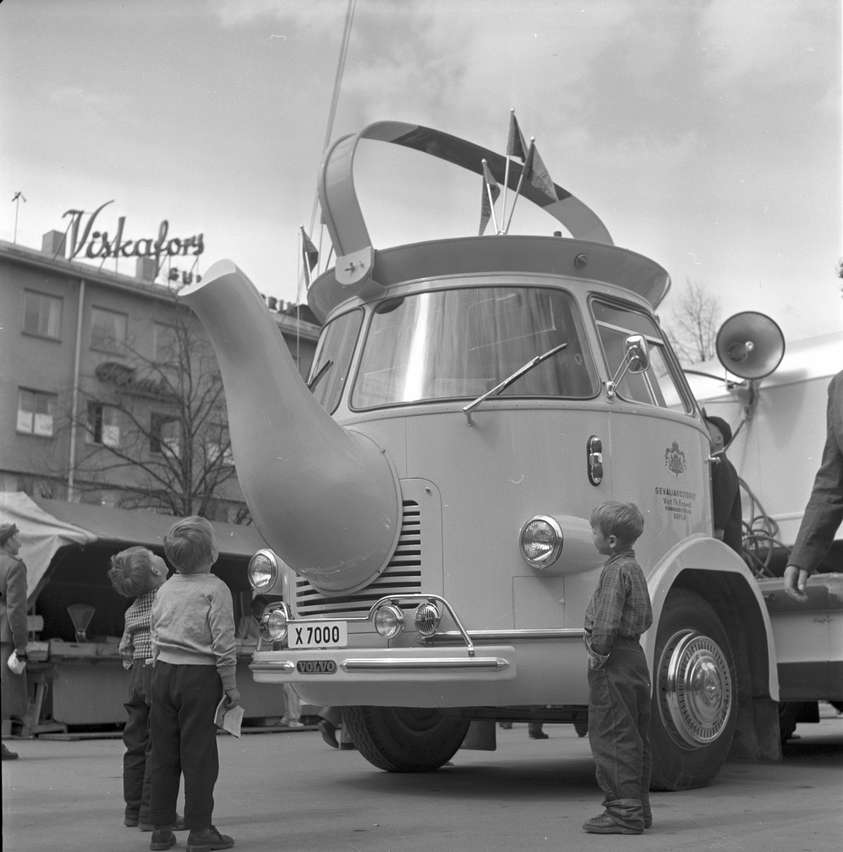 Engwall & Co. 16 maj 1956. Gevalia på busstorget, kaffeservering.