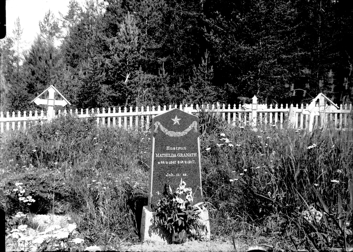 Gravsten med text: "Hustrun MATHILDA GRANATH * 28/3 1847 +15/6 1917 Joh. 11:25".