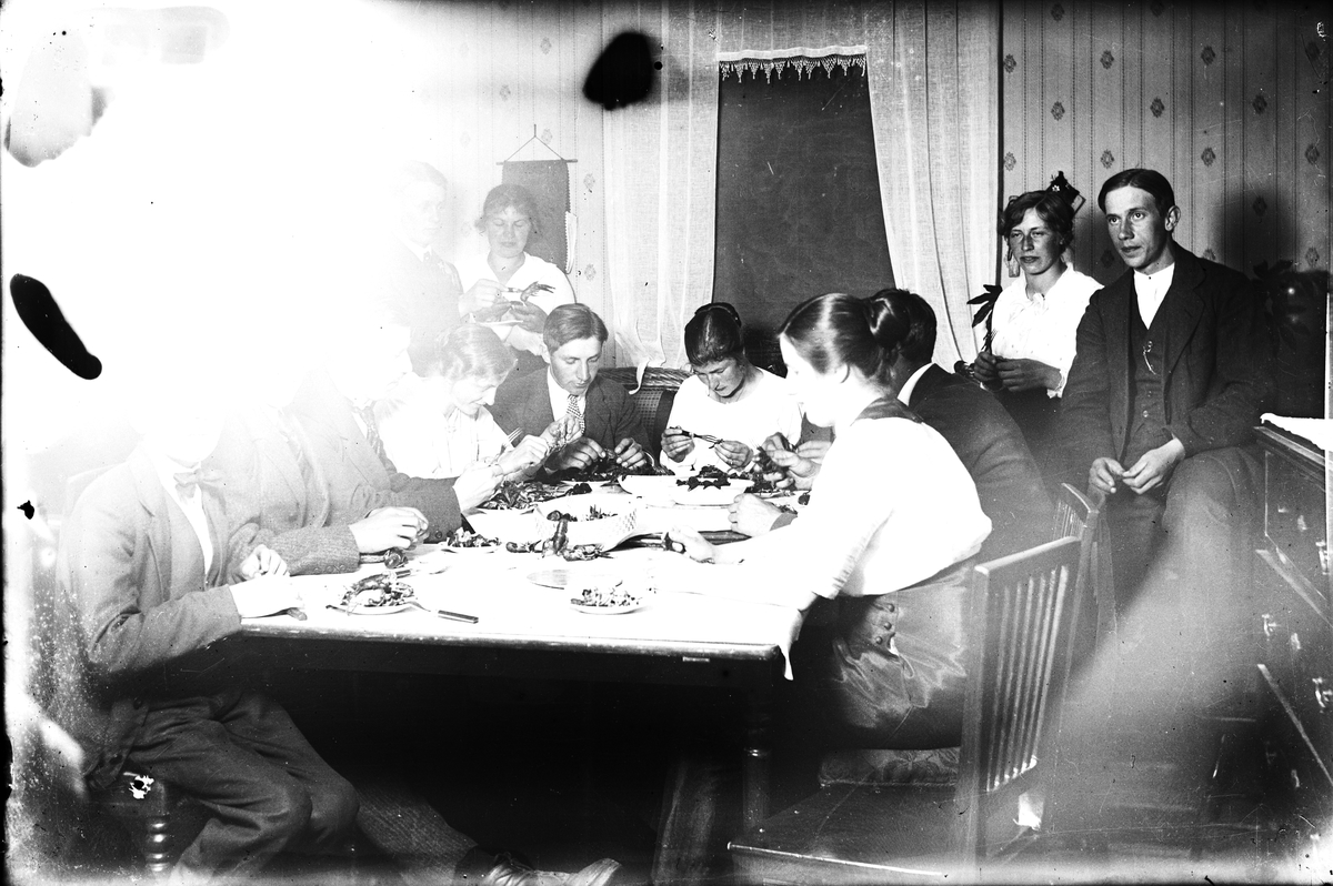 Familj samlad vid middagsbordet.