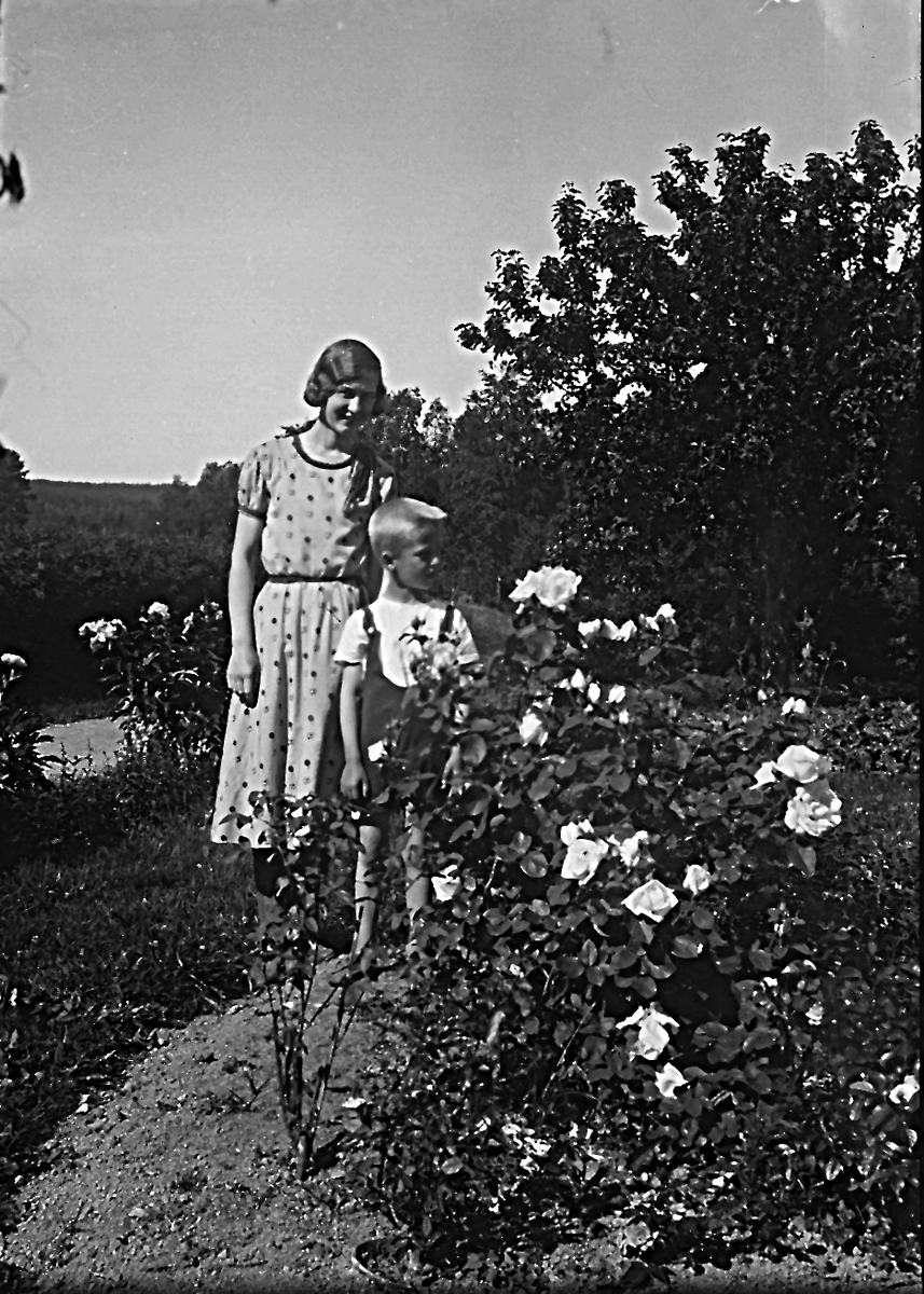 Anna Maria Spets, född den 10 november 1894, och hennes son Stig. Anna Maria flyttade till Bromma i Stockholm 1920 när hon var 26 år gammal.