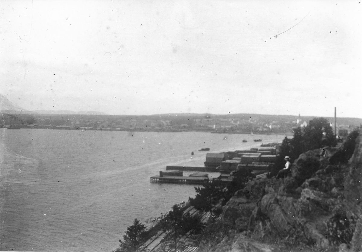 Hudiksvall, utsikt från Köpmanberget in mot fjärden och staden.