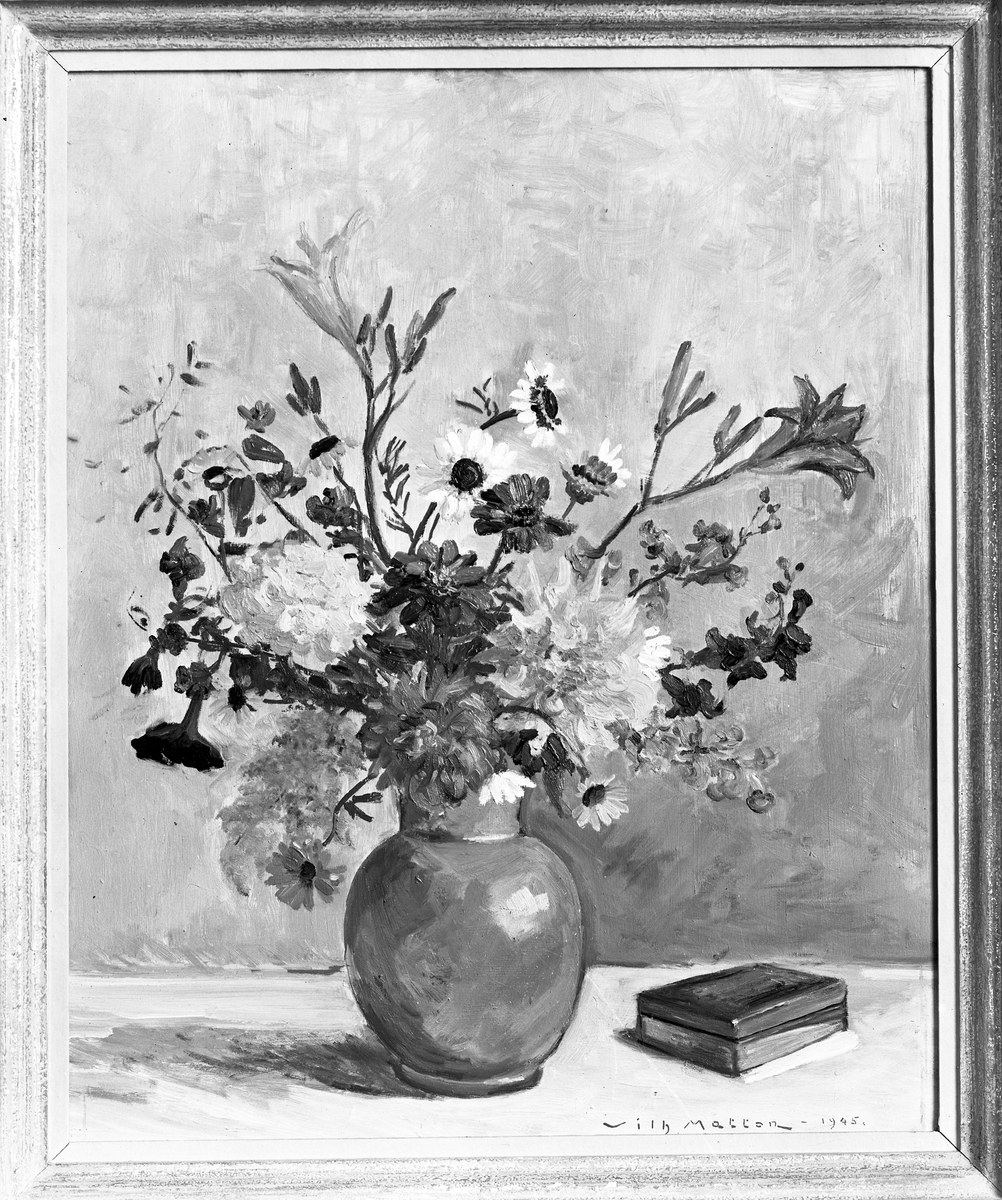 Tavla av konstnär Vilhelm Matton, 27 maj 1946. Konstnär, tecknare, född 1901 i Gävle - död 1971 i Öregrund. Han har studerat på olika konstskolor i Stockholm. Han har arbetat med genremotiv, landskap, gärna med snö, samt blommor. Separatutställning: i Gävles stadshus, 1952 med Gävlebilder. Han var även känd som fotograf.