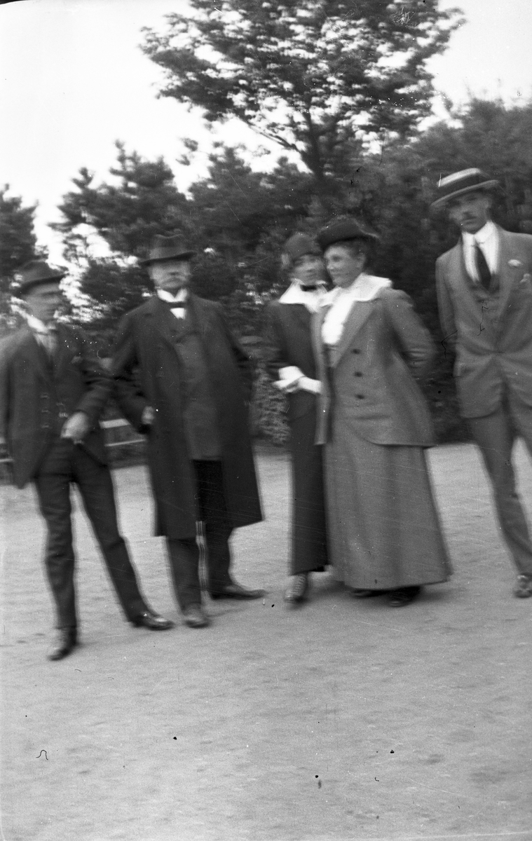 Simon Åkerlöf i mitten med hatt, hans hustru Elsa med vitt krås.