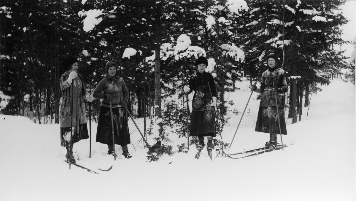 Från vänster: Signe Sjörén, Ebba Wikström (fosterbarn i Målars), Sven-Jons Karin (Jonsson) och Sara Ek. Bilden tagen vid "Sunds gata" intill Gustav Wåågs.