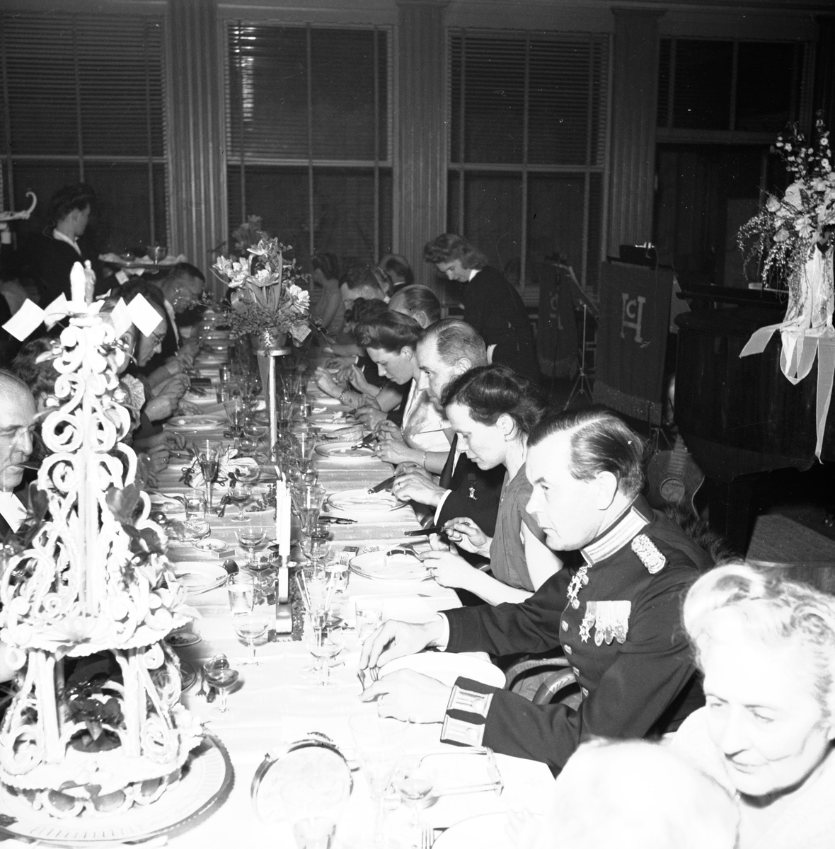 Titel: Brudparet Müller, mottagningen på hotellet. 1946