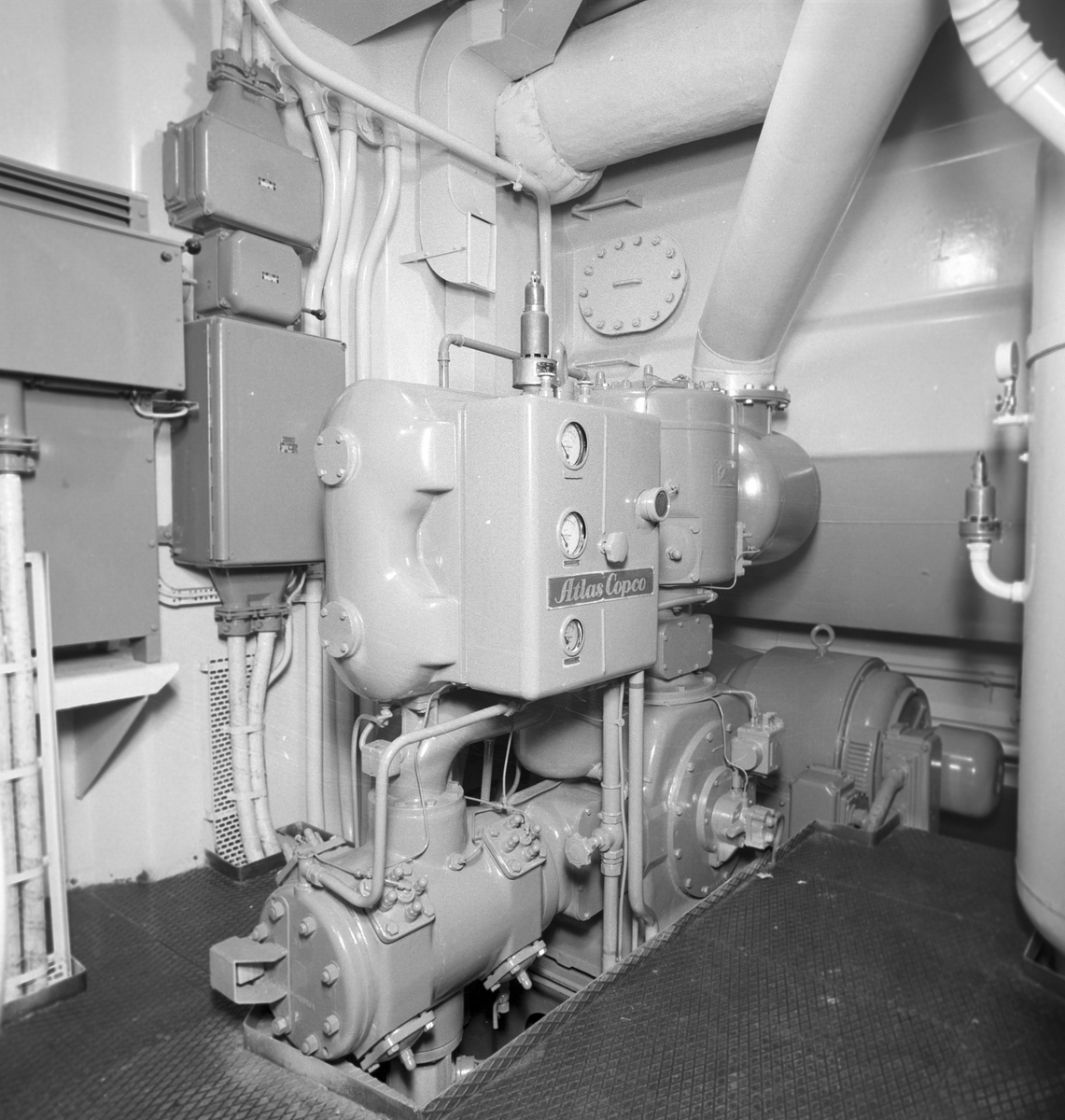Titel: Ombord på fartyget. Gävle Varv anlades 1873. Efter en konkurs 1921 bildades Gefle Varfvs och Verkstads Nya AB, som bland annat tillverkade oljecisterner och utrustningar till pappersmassefabriker. På 1940-talet återupptogs skeppsbyggeriet. På 1950-talet, då Korsnäs AB ägde varvet byggdes flera högsjöfartyg. I början av 1960-talet byggde varvet den ponton som regalskeppet Wasa skulle placeras på vid bärjningen.