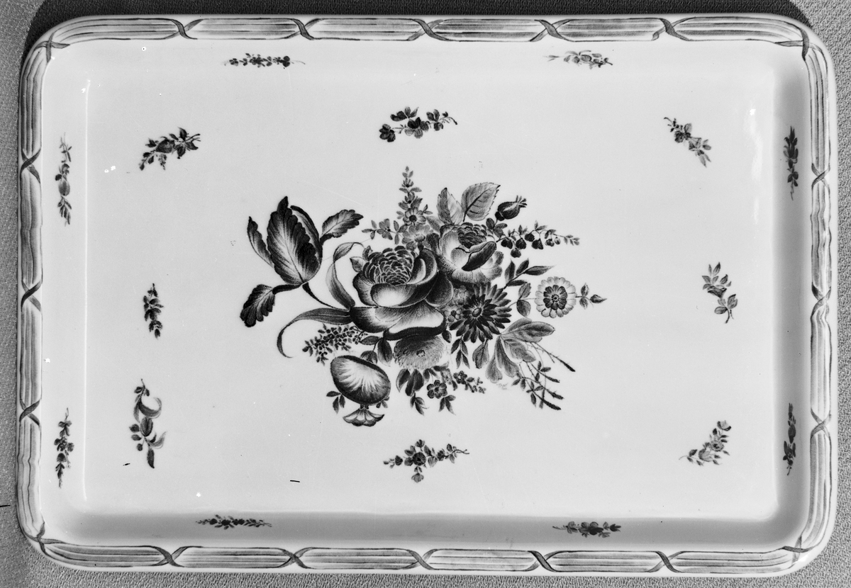 Brun meissenblommor, tebordsskiva