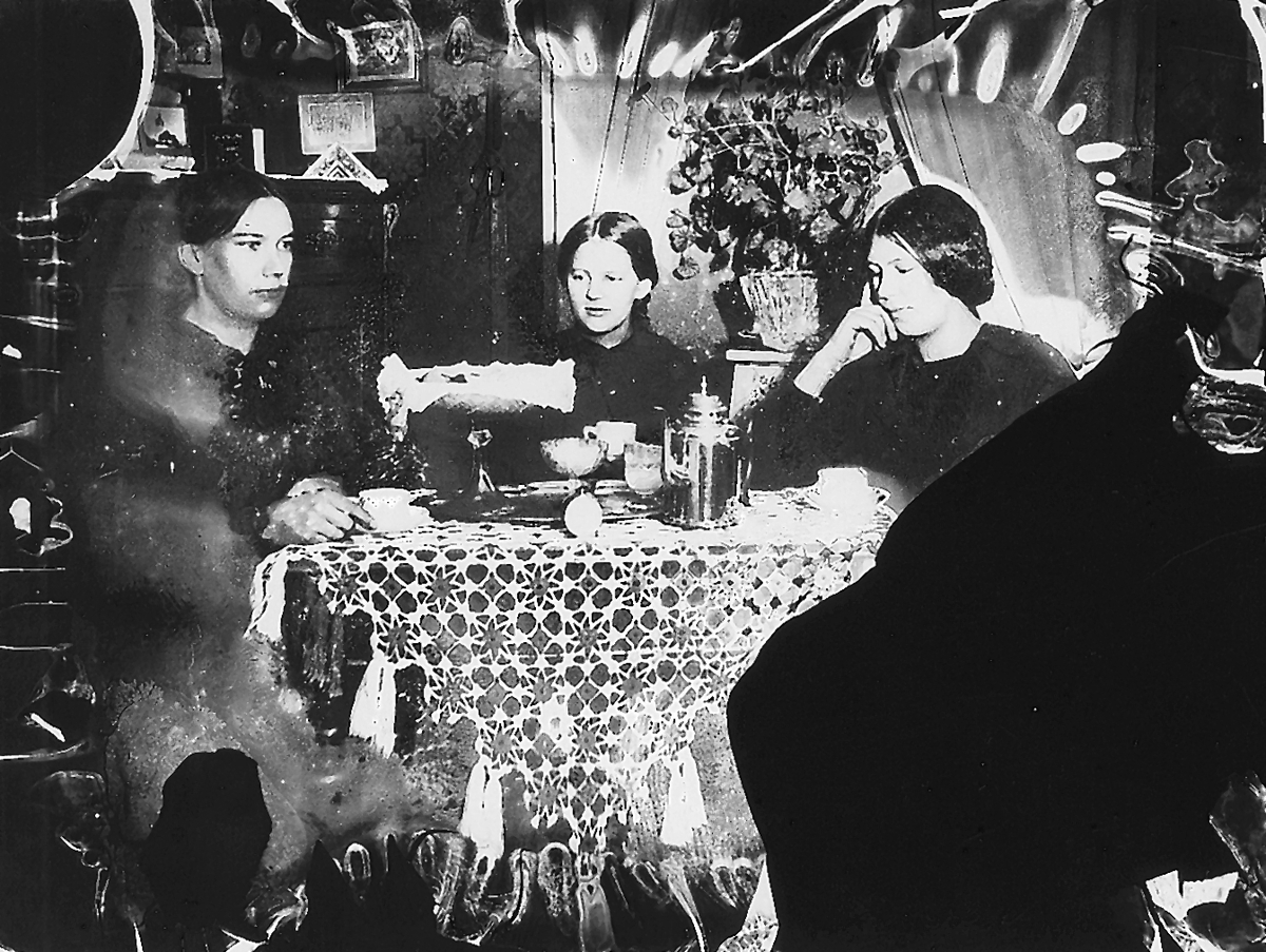 Kvinnan till vänster okänd, Elvira Lindberg, Ester Lindberg på "Berget" i Östansjö.