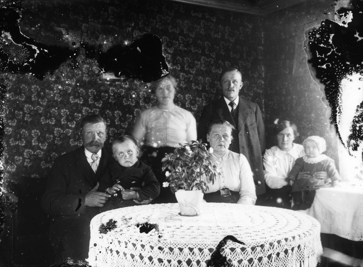 Familj samlad i finrummet.