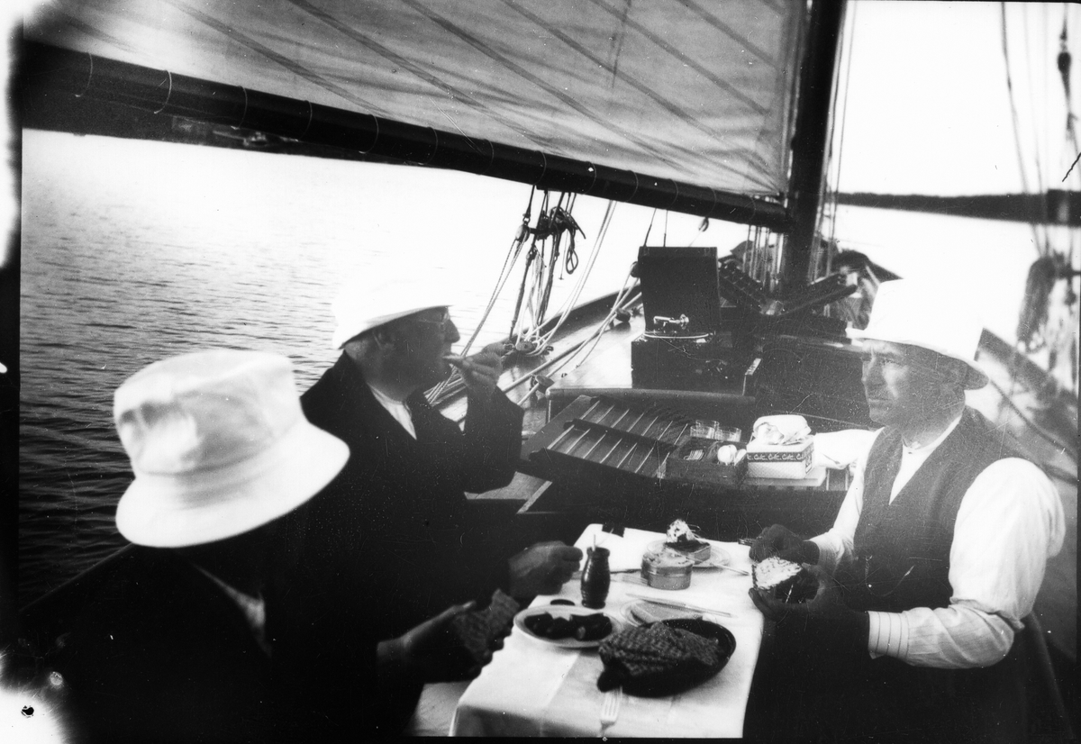 Göta kanal. "Ingvor", skaffning. Till vänster Josef Johansson och till höger Carl Norenberg.