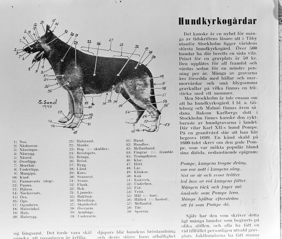 Holger Olsson, information om hunden och om hundkyrkogård i Stockholm