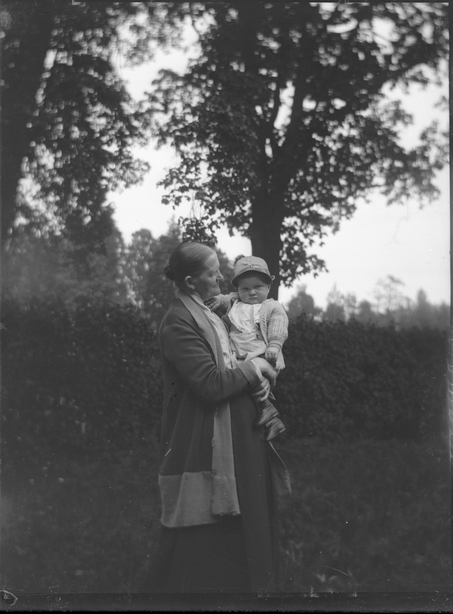 Här står Anna Margareta Larsdotter Olsson med sin sonson, Einar Olssons son Bengt.