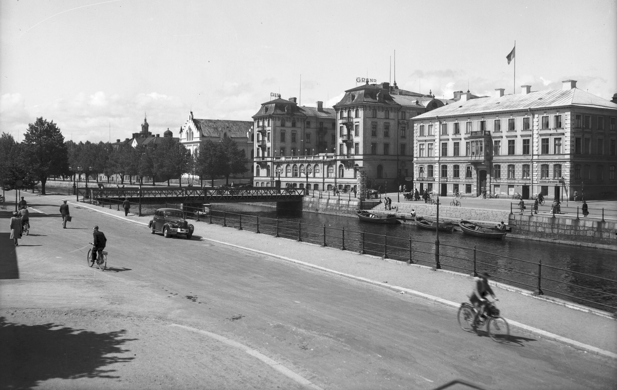 Invigdes 1901. En träbro på järnstomme i två spann som en länk mellan Norra och Södra Centralgatan