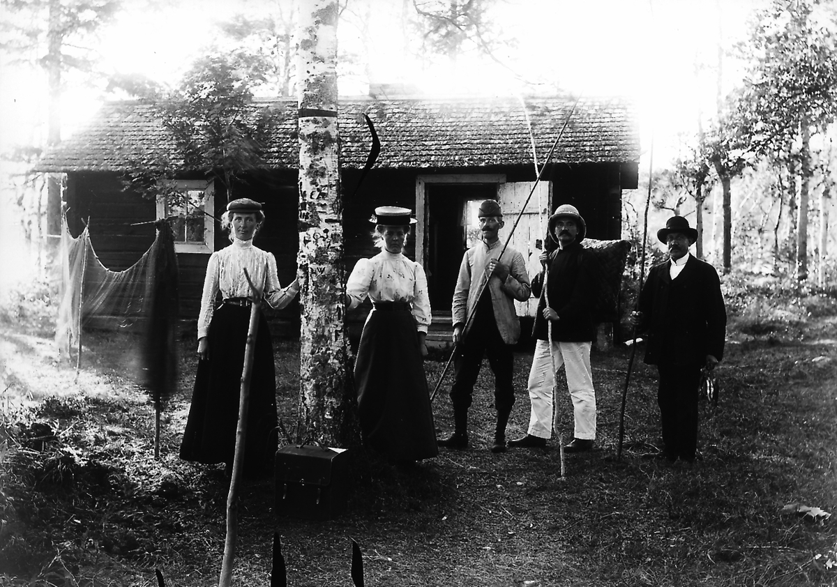 Växbo: Kristina (Stina) Edlund, okänd kvinna, David Edlund, två okända män.